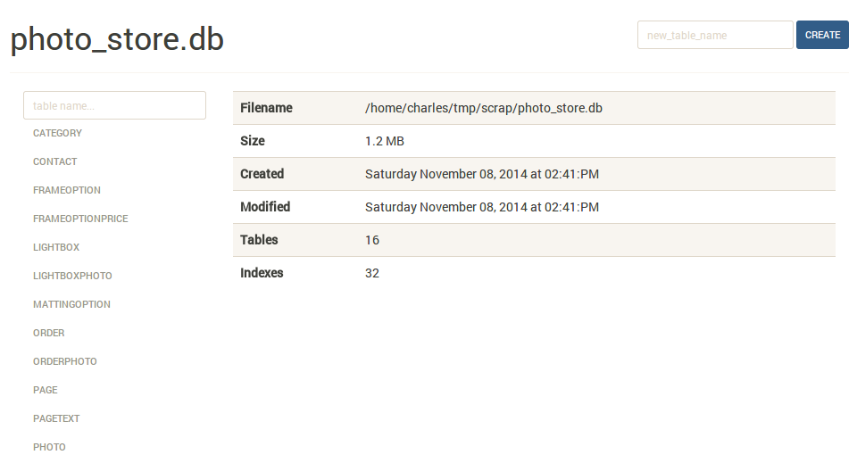 다음 명령을 사용하여 sqlite_web을 실행합니다. 데이터베이스 파일의 경로를 지정합니다.