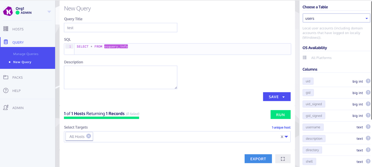 - 프로그램 가능한 라이브 쿼리: osquery는 프로그램 가능한 SQL 쿼리 언어를 사용하여 운영 체제 및 애플리케이션 정보를 쿼리하는 도구입니다. 플릿을 통해 이러한 쿼리를 관리하고 실행할 수 있으며, 이를 통해 시스템 상태, 보안 문제, 네트워크 활동 등을 실시간으로 모니터링하고 조사할 수 있습니다.