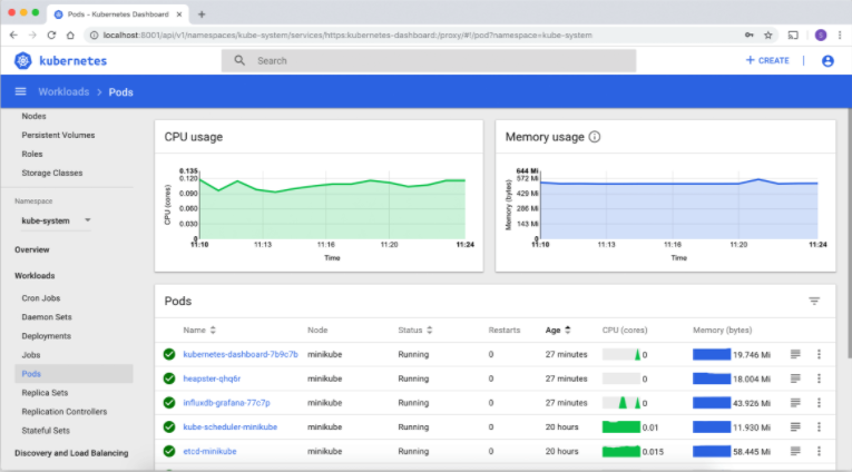 이제 로컬 브라우저에서 다음 URL을 사용하여 Minikube 대시보드에 액세스할 수 있습니다.http://MINIKUBE_IP:8001/api/v1/namespaces/kubernetes-dashboard/services/http:kubernetes-dashboard:/proxy/MINIKUBE_IP는 Minikube 클러스터의 IP 주소입니다.minikube ip명령어를 사용하여 Minikube의 IP 주소를 확인할 수 있습니다.