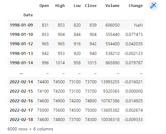 samsung = fdr.DataReader("005930") # 삼성 주가 데이터 가져오기