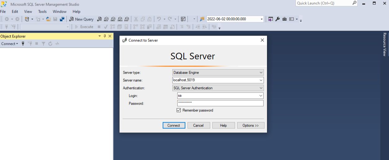 - 자격 증명: sa 및 MyPass@word