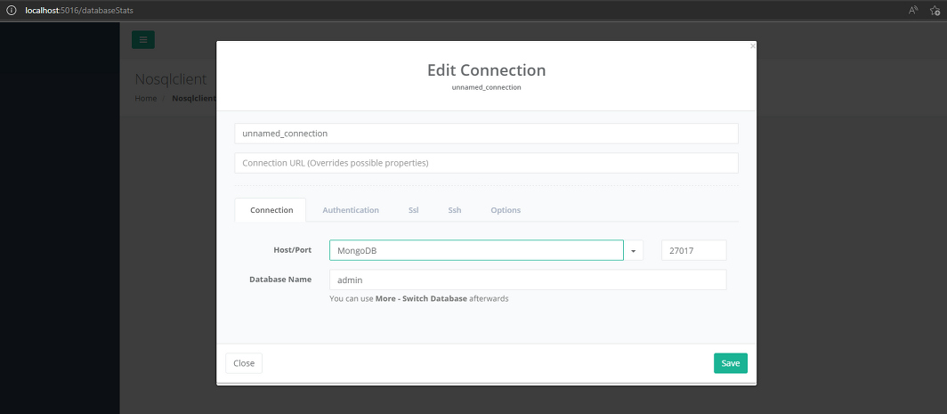 - Nosqlclient 클라이언트는 브라우저에서 http://localhost:5016/ 주소로 접근할 수 있으며, 추가 구성이 필요하지 않습니다.