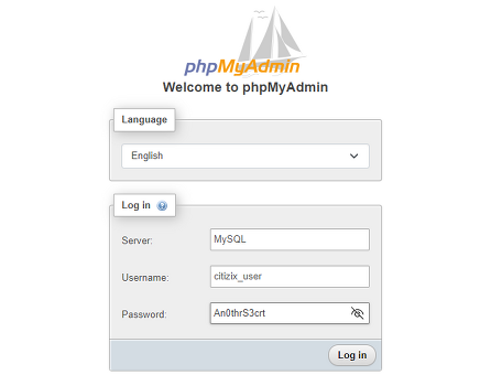 - 데이터베이스 자격 증명: citizix_user 및 An0thrS3crt