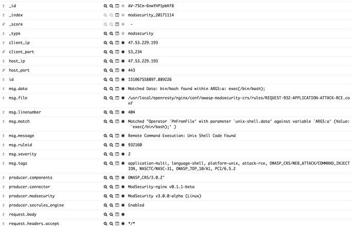 $ git clone https://github.com/theMiddleBlue/modsecurity-to-elasticsearch.git