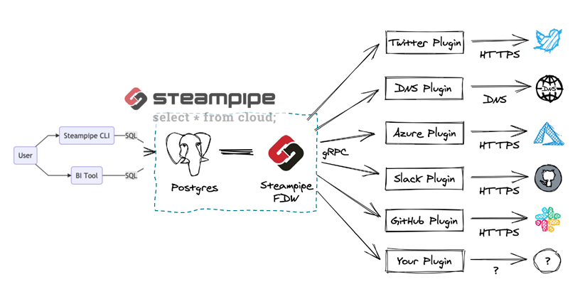 - 플러그인 아키텍처: Steampipe의 플러그인 아키텍처를 통해 새로운 데이터 소스나 서비스에 대한 지원이 확장 가능합니다.