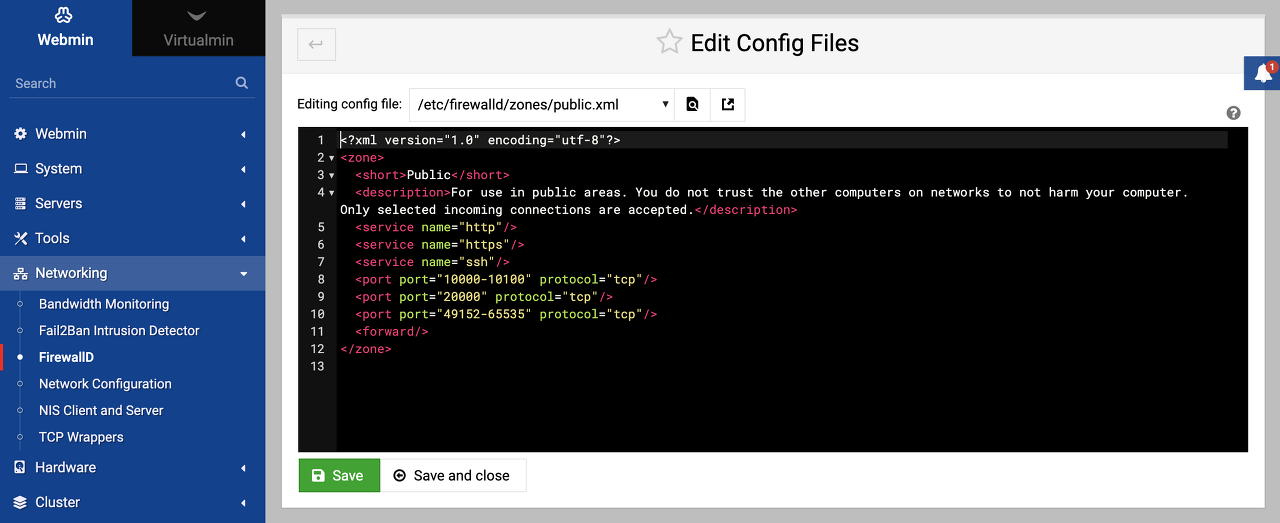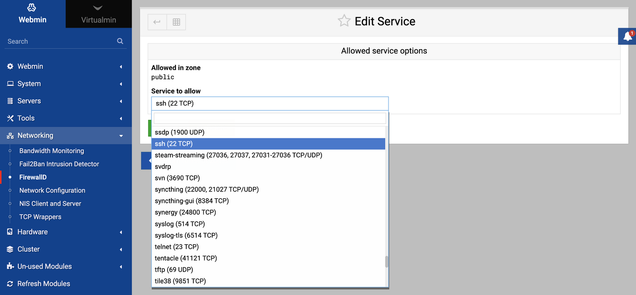 Webmin을 사용하여 FirewallD 규칙을 관리하는 방법은 다음과 같습니다.