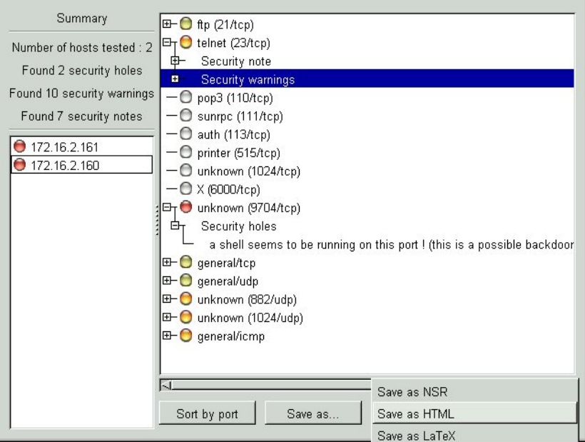 취약점 점검이 끝나면 모든 정보를 종합하여 어떤 부분이 취약한지와 또한 어떻게 패치하고 대처하여야 하는지에 대하여 결과에 대해 리포트를 작성해 보여주고 이 결과 보고서는 HTML이나 ASCⅡ등 원하는 형태로 선택하여 저장할 수 있다. 자신의 서버에는 어떠한 취약점이 있는지 각자 nessus 로 점검을 해 보기 바란다.