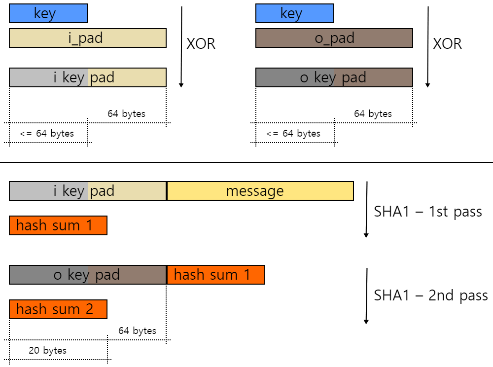 - 해시 함수: HMAC은 SHA-1, SHA-256 등 다양한 해시 함수를 사용할 수 있으며, 사용하는 해시 함수에 따라 보안성이 달라질 수 있습니다.