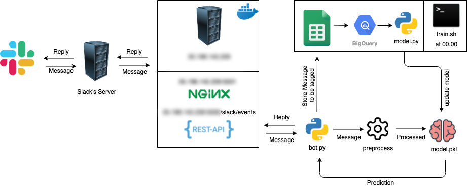 - 슬랙으로부터 메시지 이벤트를 수신하는 웹훅을 설정합니다. 이 웹훅은 슬랙 채널에서 발생하는 모든 메시지를 수신하고, 이를 데이터베이스에 저장합니다.