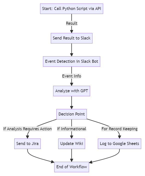 A[Start: Call Python Script via API] -->|Result| B[Send Result to Slack];