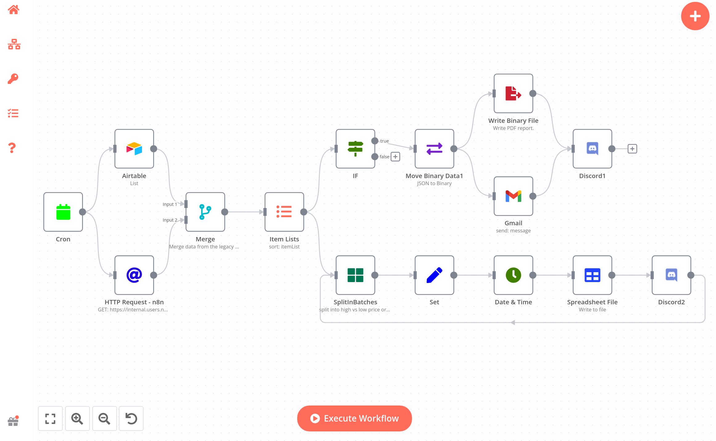 n8n을 통한 워크플로우 자동화는 매우 강력하며, 다양한 시스템과 서비스를 연결하여 복잡한 자동화 태스크를 수행할 수 있게 해줍니다. 워크플로우의 구성은 사용 사례에 따라 달라지며, n8n의 시각적 인터페이스를 통해 쉽게 구성할 수 있습니다.