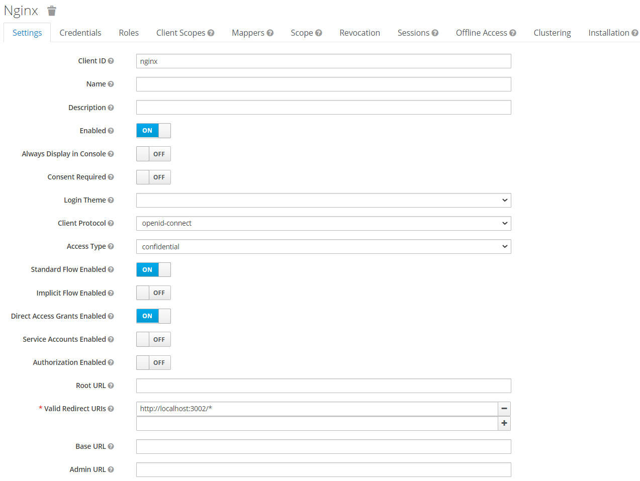 Creating a new client. - 클라이언트 비밀 추가: Credentials 탭에서 생성된 비밀키를 Nginx 설정 파일에 추가합니다.