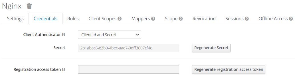 Creating a new client. - 클라이언트 비밀 추가: Credentials 탭에서 생성된 비밀키를 Nginx 설정 파일에 추가합니다.