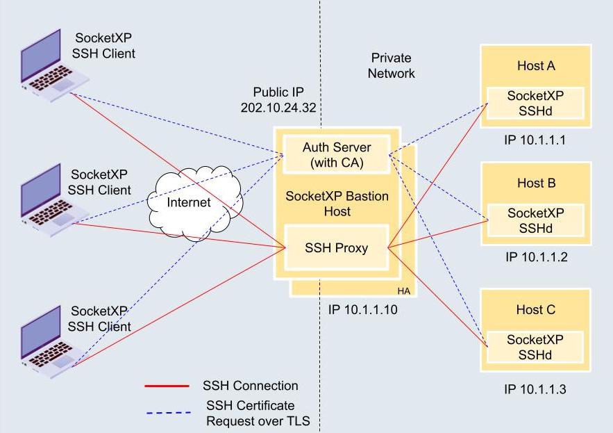 - SSHd 서버: 각 호스트 서버에서 실행되며, 인증 서버로부터 호스트 인증서를 다운로드합니다.