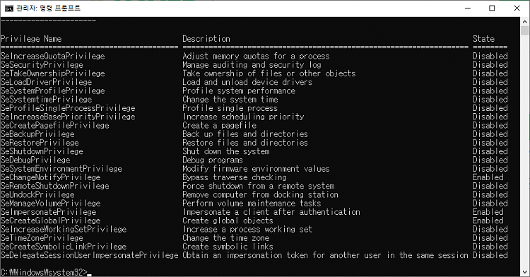 secedit /configure명령어를 사용하여 원하는 보안 정책을 시스템에 다시 적용합니다.