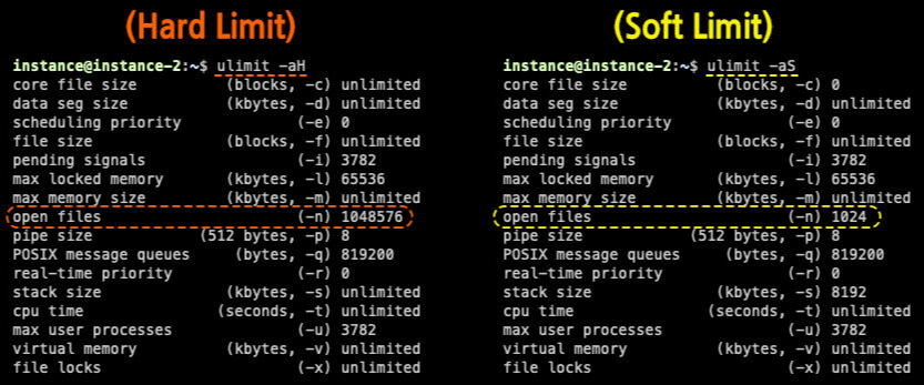 이러한 명령어와 방법을 통해 시스템의 현재 리소스 사용 상태를 파악하고, /etc/security/limits.conf