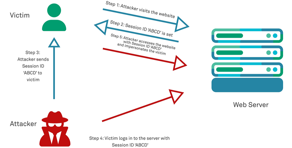 세션 고정 공격은 공격자가 임의의 세션 ID를 생성하거나 선택하여 사용자에게 강제로 사용하게 만든 후, 사용자가 해당 세션 ID로 인증 절차를 완료하면 공격자가 해당 세션을 탈취하는 공격입니다. 공격자는 이를 통해 사용자의 인증된 세션을 제어할 수 있게 됩니다. 이 공격의 핵심은 웹 애플리케이션의 세션 관리 취약점을 이용하는 것입니다.