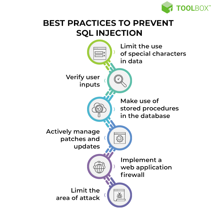 - SQL Injection을 방지하는 최선의 방법 중 하나는 애플리케이션 코드에서 쿼리를 파라미터화하는 것입니다. 이 방법은 악의적 사용자가 쿼리 구조를 변경할 수 없도록 하여 SQL Injection 공격을 효과적으로 방지합니다.