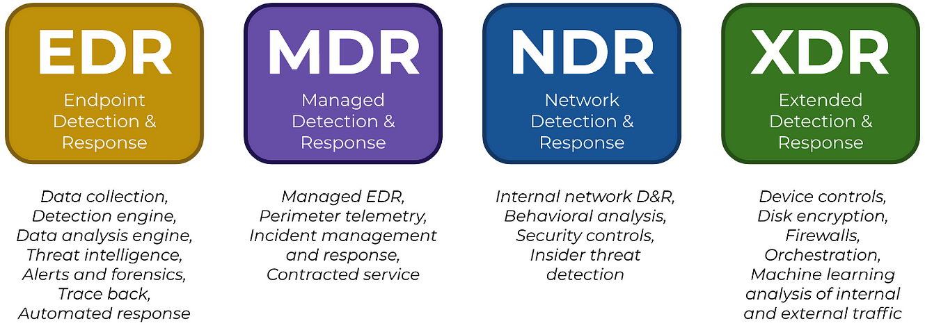 - EDR: 엔드포인트에 집중하여 실시간 위협 탐지 및 대응, 포렌식 분석에 특화.