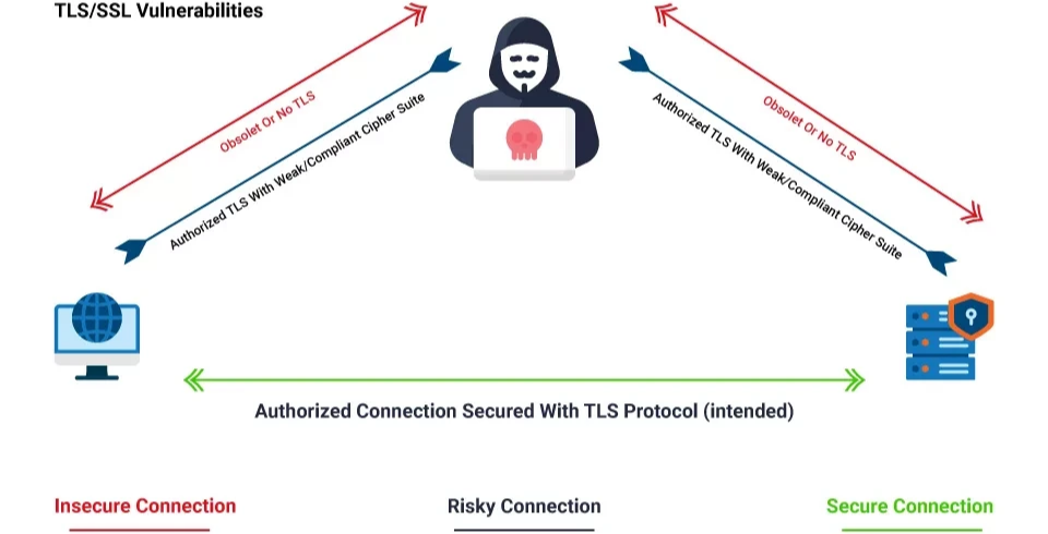 위의 설정 예시는 Nginx 웹 서버에 TLS 1.3을 설정하고 권장 사이퍼 슈트를 사용하는 방법을 보여줍니다. 이를 통해 보안 수준을 높이고 안전한 암호화 통신을 보장할 수 있습니다. 몇가지 예시로 취약사항 조치 및 보안 관점에서의 필수 변경 및 긴급도 평가에 대해 설명해 보겠습니다.