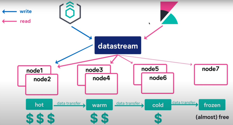 - 관리: 주로 Elasticsearch의 기본 노드에 저장되며, 고성능 디스크를 사용합니다.