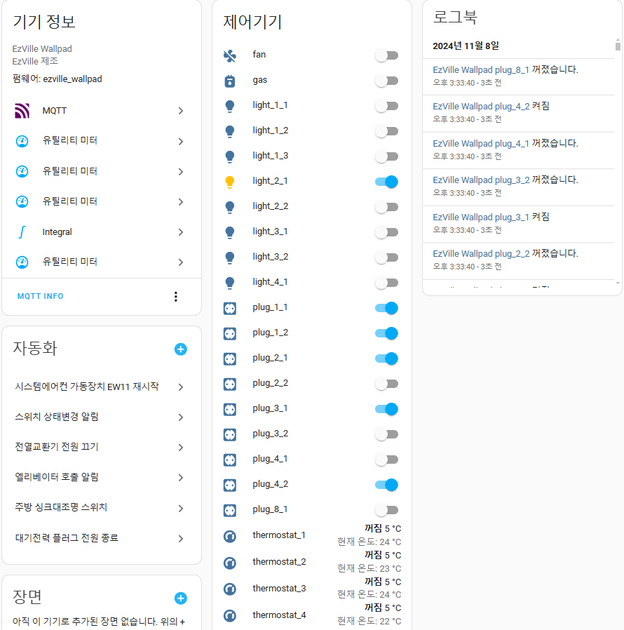 MQTT 프로토콜과 RS-485를 활용하여 스마트 홈 장치들의 상태를 관리하고 제어하는 스크립트입니다.