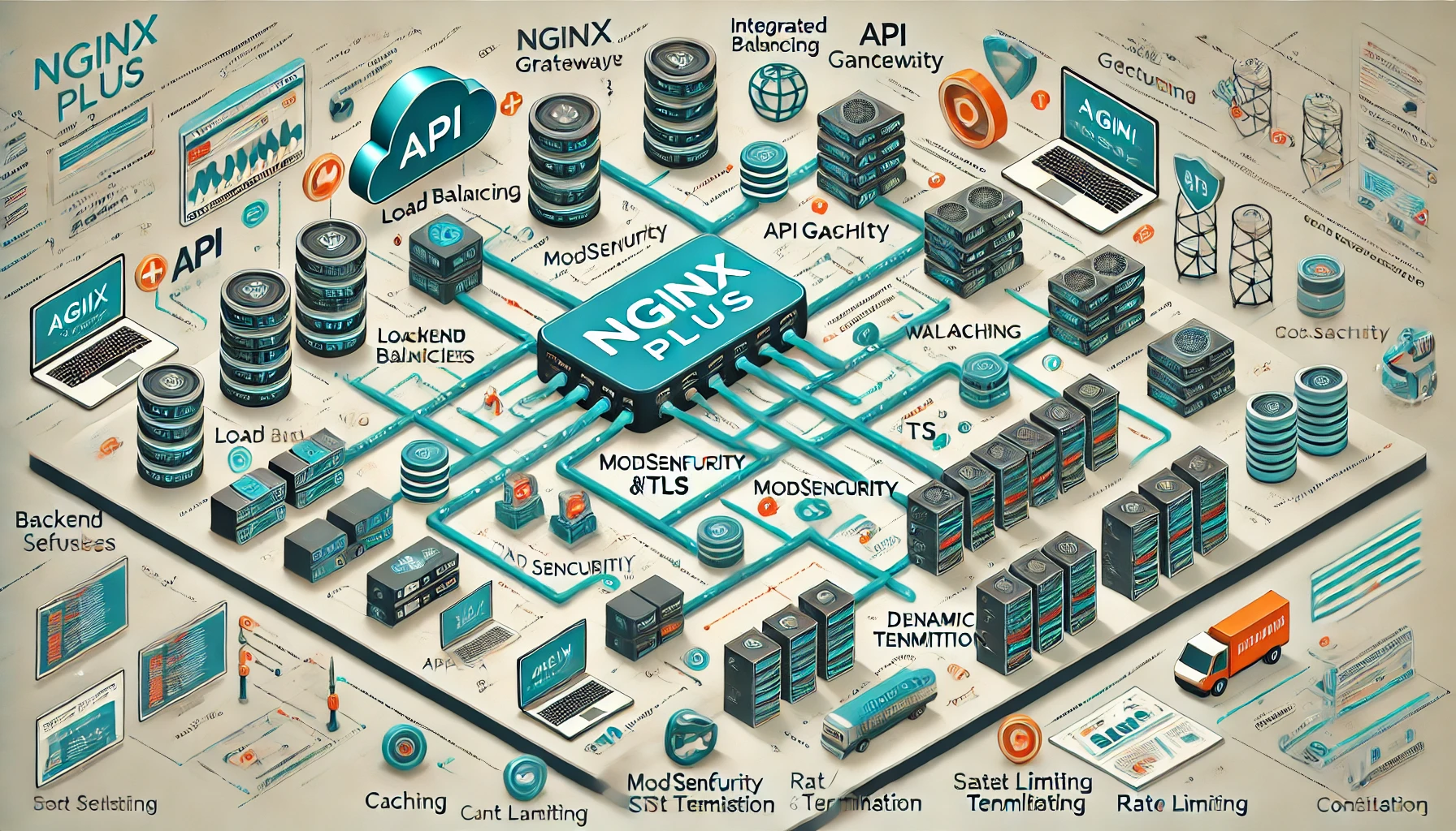 - 고급 로드 밸런싱: NGINX Plus는 L7(Application Layer) 및 L4(Transport Layer) 로드 밸런싱을 지원하여 트래픽을 여러 백엔드 서버로 효율적으로 분산시킵니다.