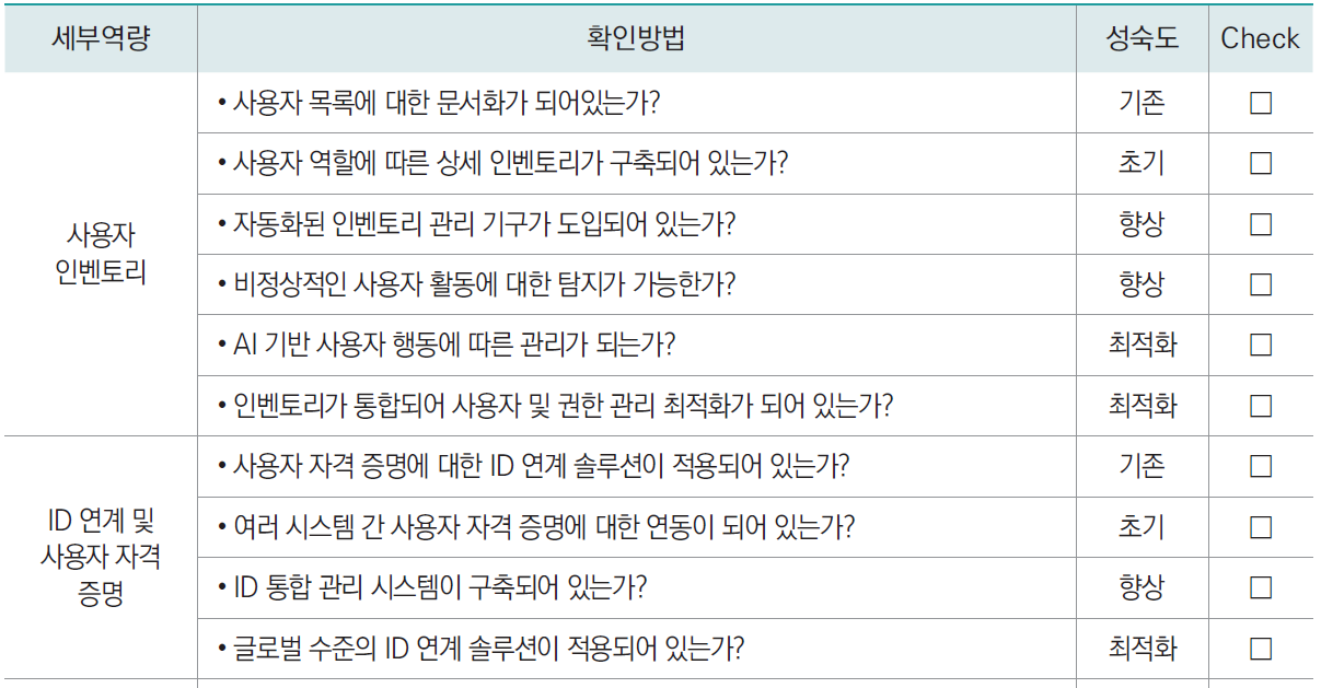 - (제로트러스트 성숙도 모델) 조직의 현재 성숙도를 이해하고, 이를 향상시키기 위해 필요한 구체적인 행동 계획 수립 시 사용