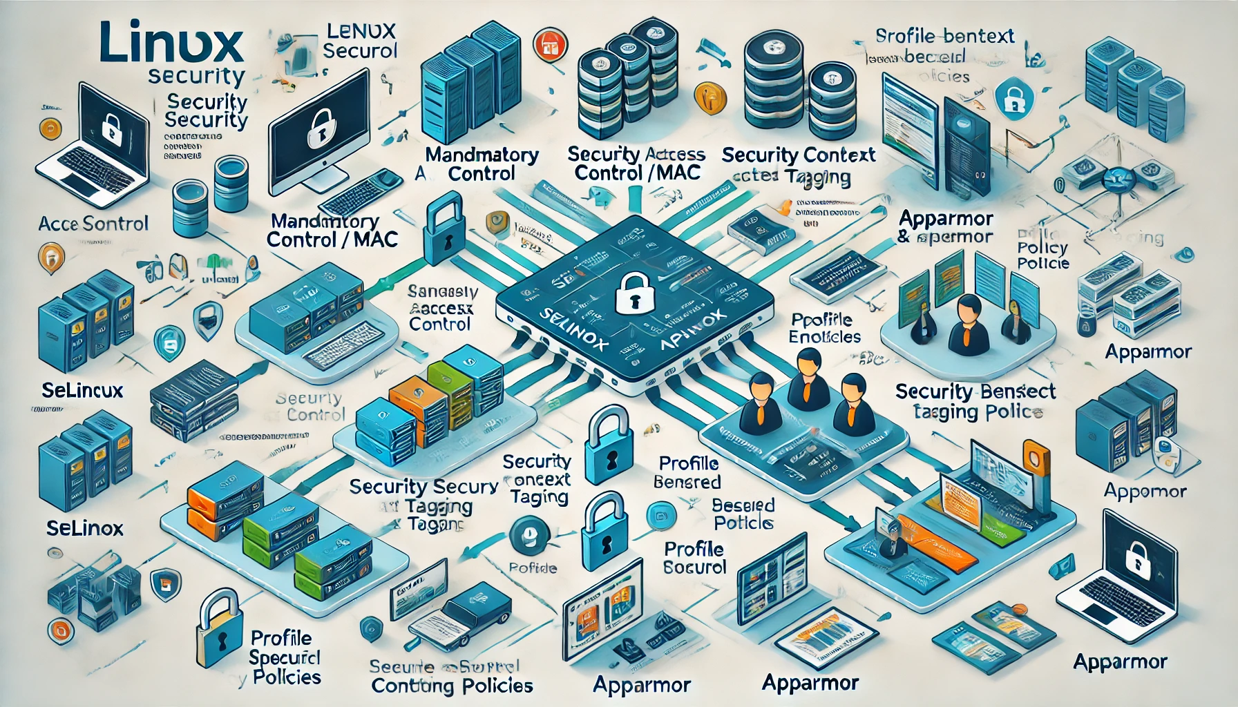 리눅스는 운영 체제의 보안을 강화하기 위해 SELinux와 AppArmor 같은 보안 모듈을 제공합니다. 이러한 보안 기능은 파일, 프로세스, 네트워크 등 다양한 리소스에 대한 접근을 엄격히 제어하며, 보안 정책 위반을 방지합니다.