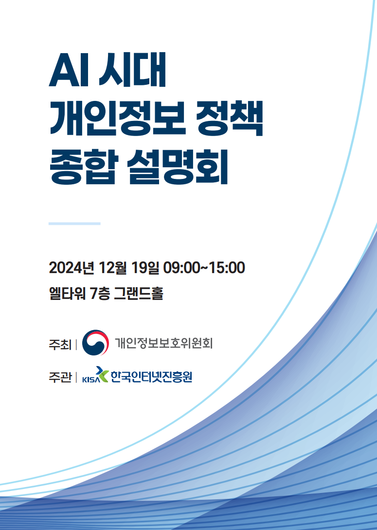 2024년 12월 19일 엘타워에서 개최된 'AI 시대 개인정보 정책 종합 설명회'의 자료집이 공개되었습니다. 자료집은 개인정보 보호와 활용을 조화롭게 이끌어가기 위한 정책적 방향과 실질적인 활용 사례를 폭넓게 다룹니다. AI 시대의 개인정보 정책 흐름과 최신 동향을 한눈에 파악할 수 있는 중요한 자료입니다.