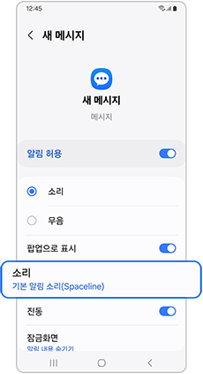 활성화 후, 메시지 앱에서 개별 알림음을 변경할 수 있는 옵션이 표시됩니다.