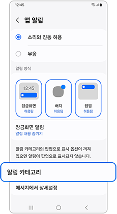 - ‘앱별 알림 카테고리 관리’ 항목을 찾아 활성화합니다.