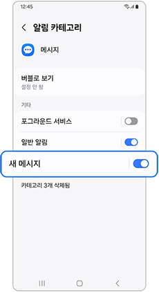 - ‘알림 카테고리’ > ‘새 메시지’를 선택합니다.