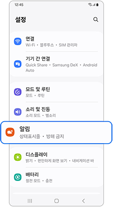 - 설정 화면에서 ‘알림’을 클릭합니다.