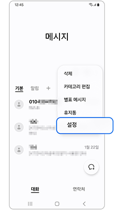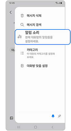 ‘앱별 알림 카테고리 관리’를 활성화한 후, 메시지 앱에서 대화방별 알림음을 설정하는 방법은 다음과 같습니다.
