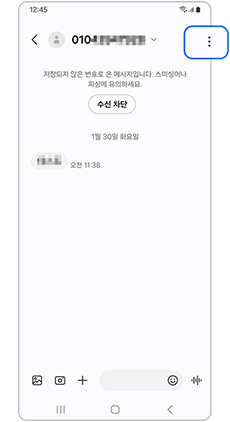 - 대화방 화면의 우측 상단 ‘더보기’ 아이콘(세로 점 세 개)을 클릭합니다.