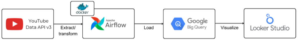 ✔ YouTube API → Airflow → BigQuery → Looker Studio