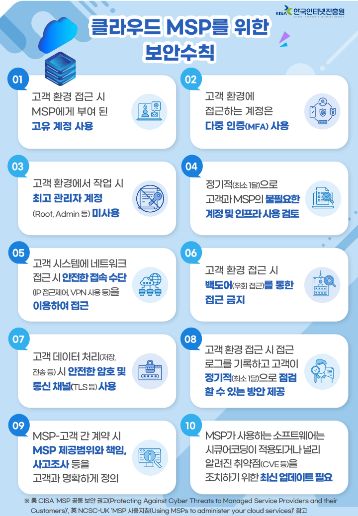 - 모든 관리자 및 고위험 계정에 MFA 적용 필수