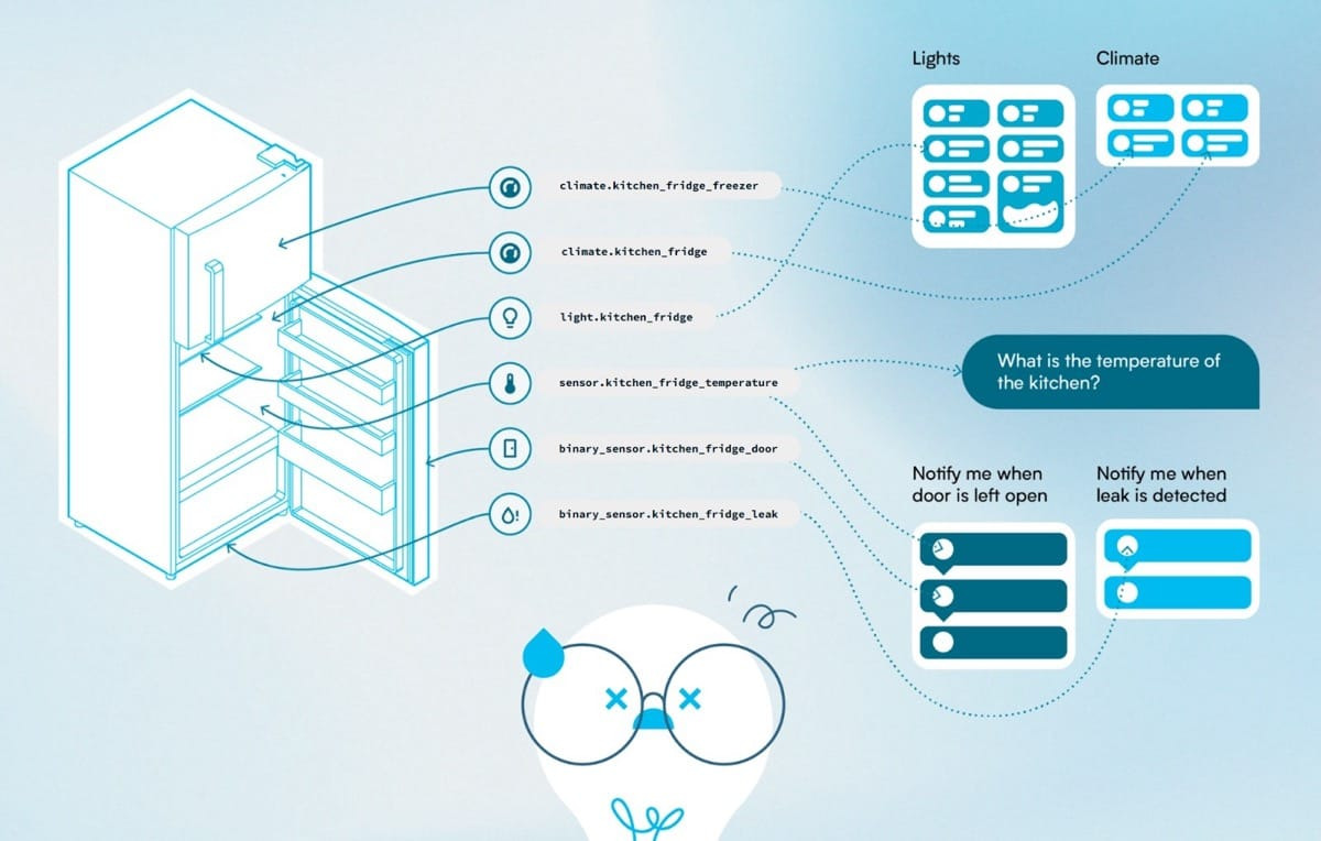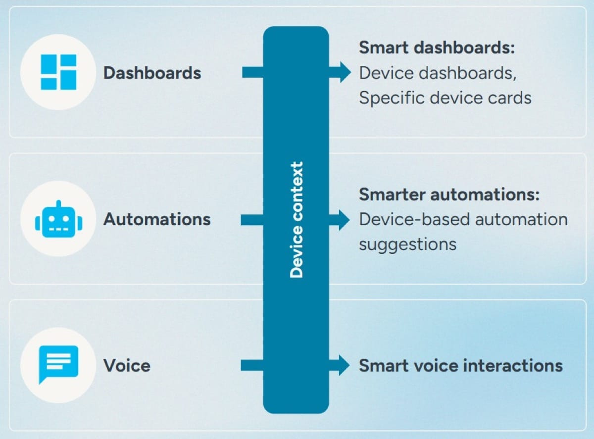 - 기존에는 기기가 여러 엔티티(센서, 스위치 등)로만 인식됐으나, 앞으로는 ‘냉장고’, ‘자동차’, ‘3D 프린터’처럼 실제 기기 단위로 맥락을 이해합니다.