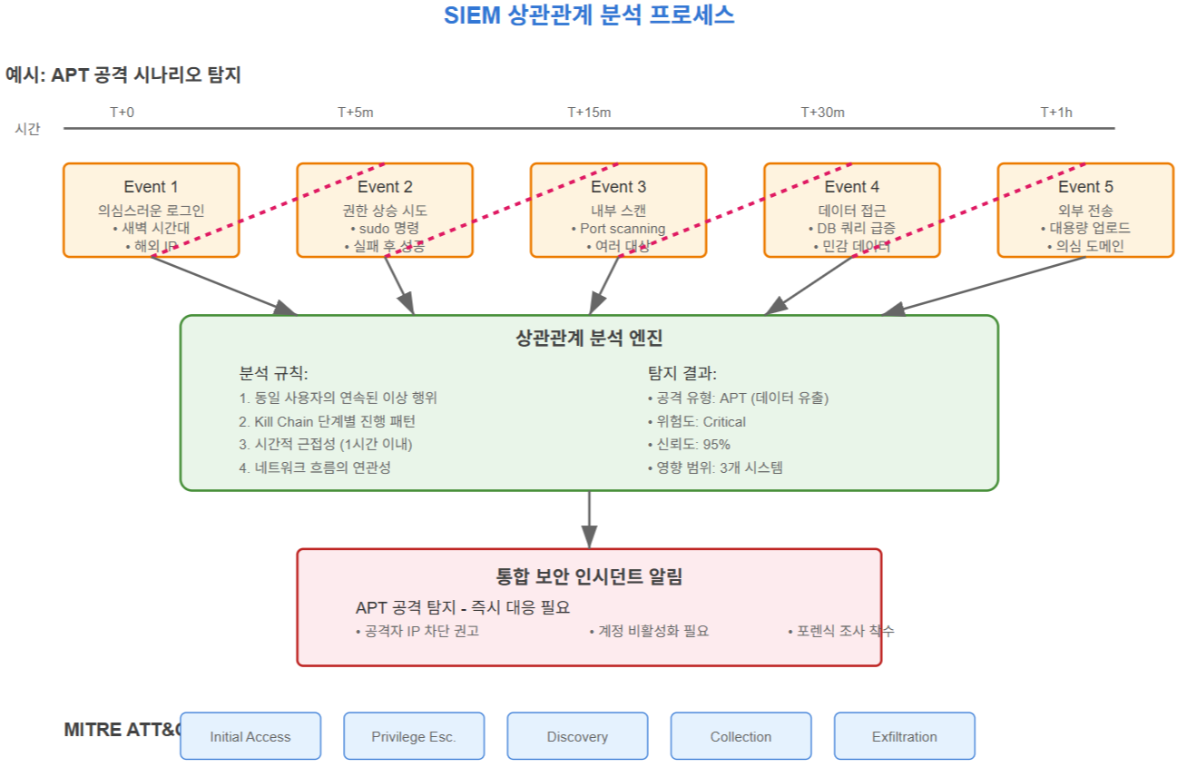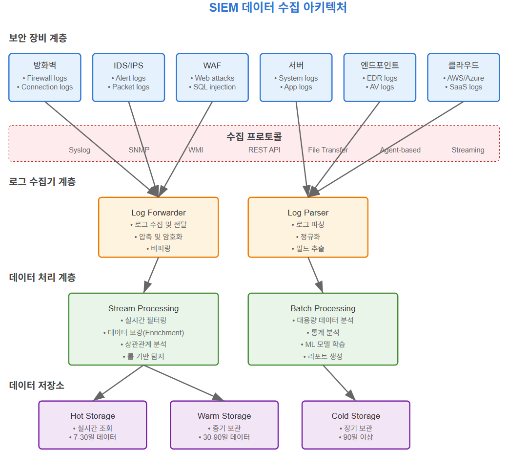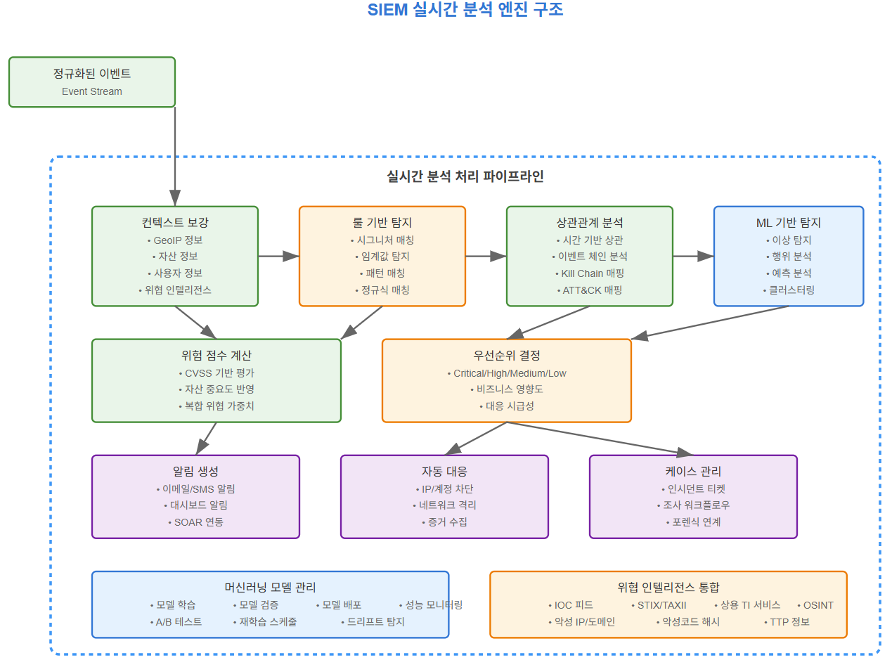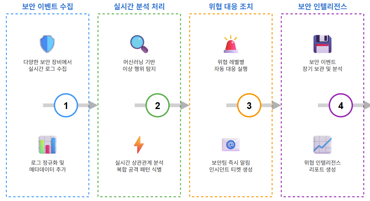 SIEM(Security Information and Event Management)은 조직의 IT 인프라에서 발생하는 보안 이벤트를 실시간으로 수집, 분석, 대응하는 통합 보안 관제 시스템입니다.