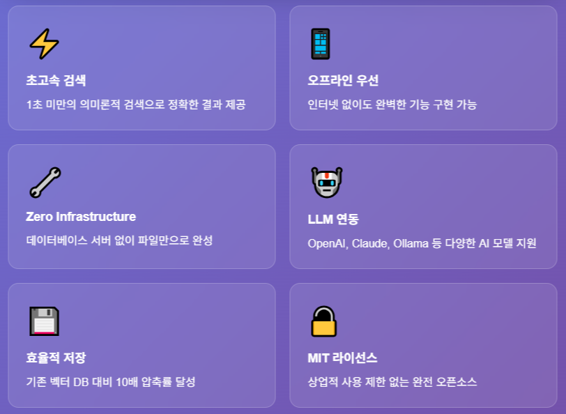 "Lightning-fast semantic search"가 Memvid의 가장 큰 자랑입니다.