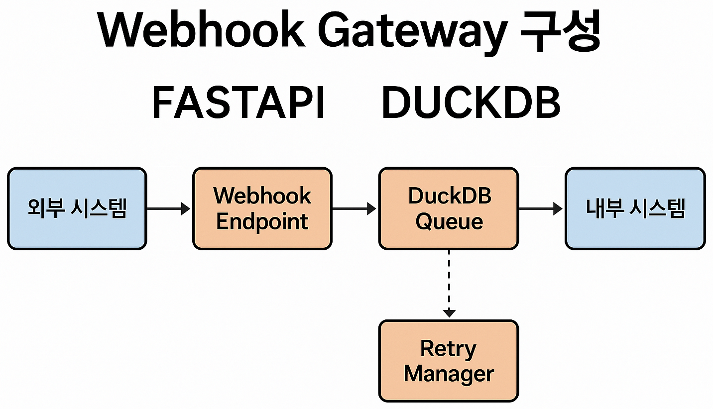 이러한 구조로 DuckDB 기반 Webhook Gateway를 구현하면, 코드 중심이 아닌 데이터 중심의 유연하고 관측 가능한 시스템을 구축할 수 있습니다.