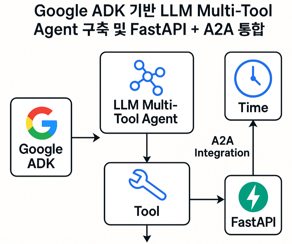 Multi-Tool Agent는 Google의 ADK (Agent Development Kit)를 활용한 LLM Agent 프로젝트로, 날씨와 시간 정보를 제공하는 간단한 예제로 시작하여 A2A, Slack/Webhook 연동, FastAPI 서비스화, 그리고 n8n, LangGraph, Guardrails, Wazuh와의 실시간 연계까지 확장 가능한 구조입니다.