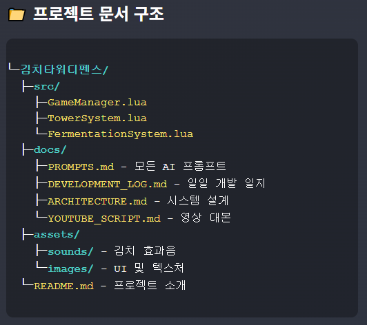 - 명확한 비전: "김치 타워 디펜스"라는 구체적 목표