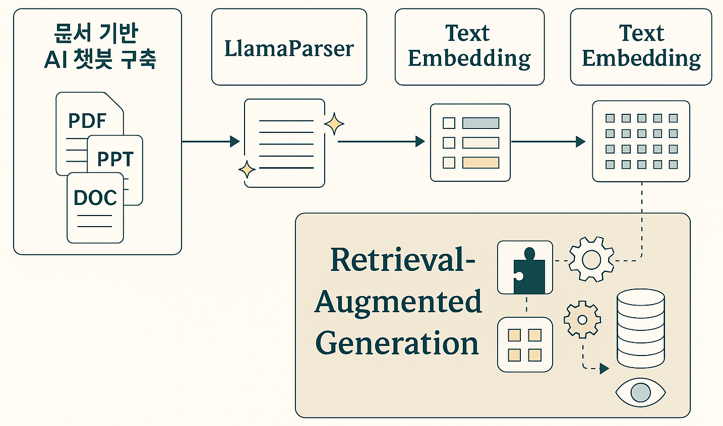 → 그래서 문서 → 정제된 텍스트 → 벡터화 → 검색 기반 AI 응답이라는 전체 파이프라인이 필요합니다.