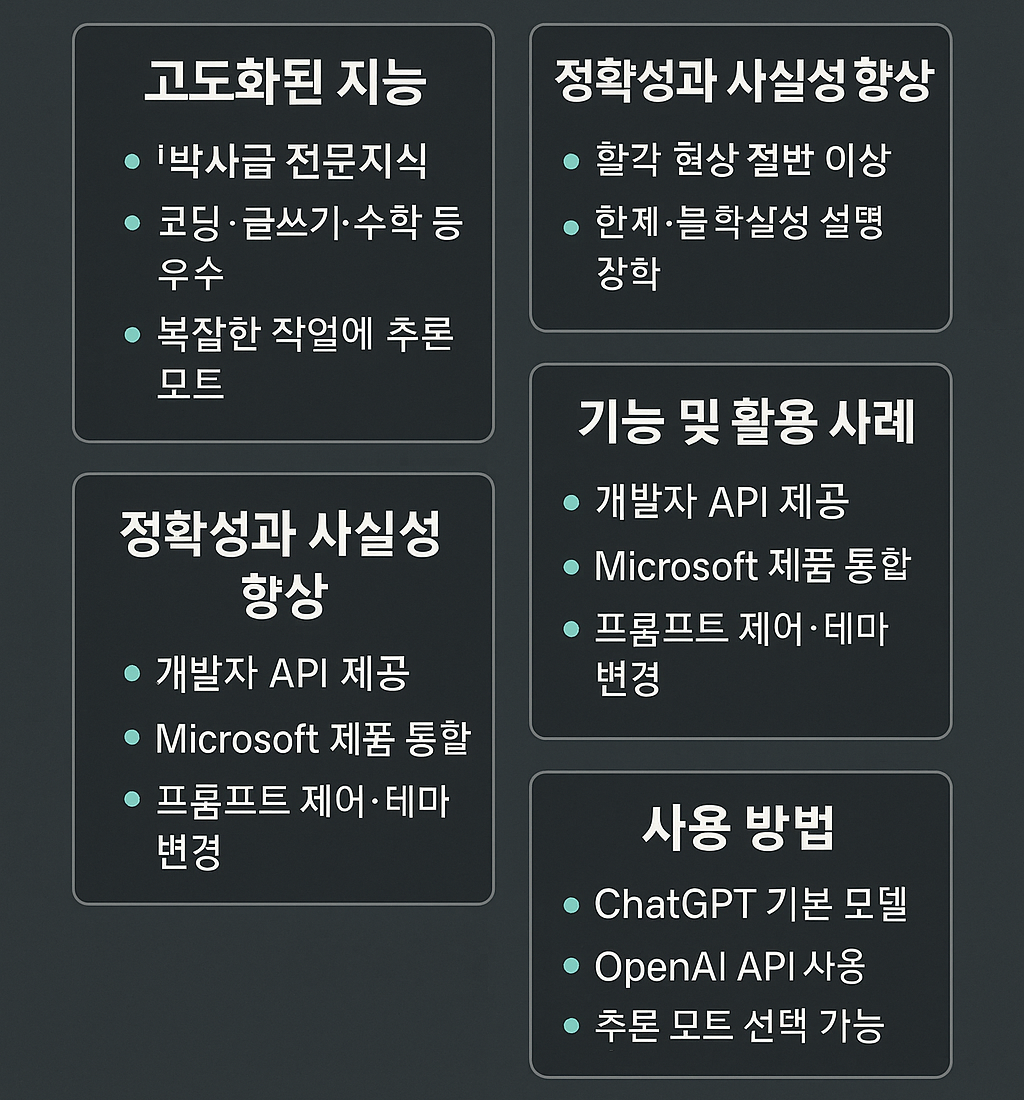 - GPT-5는 “박사 수준”의 전문가적 응답 능력을 목표로 설계됨.