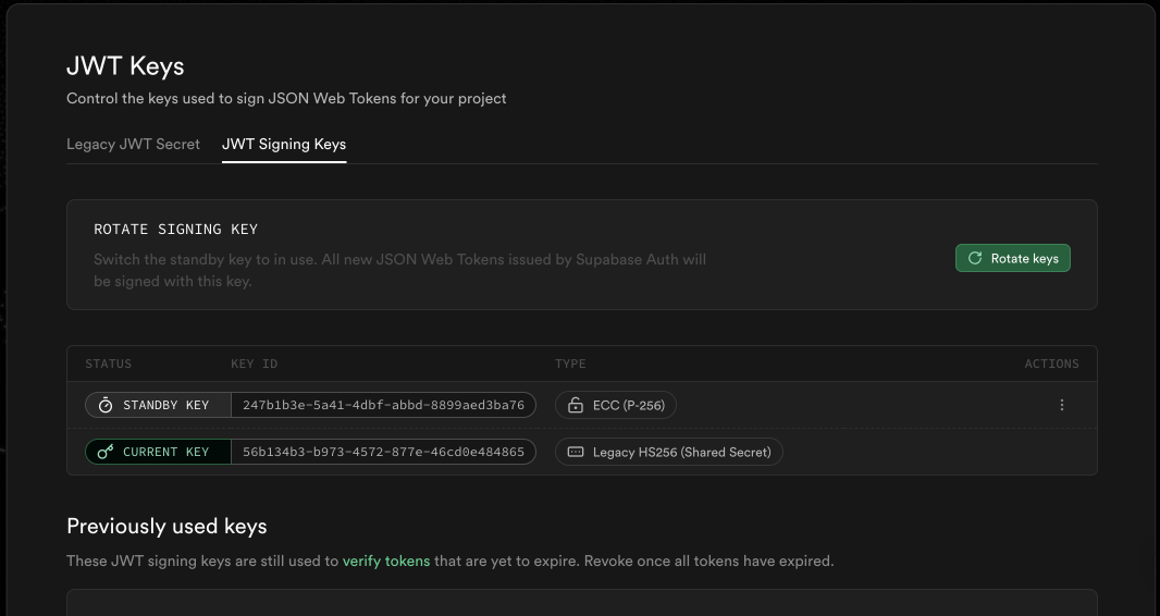 - 내용: Supabase Auth에서 이제 JWT 서명 키(JWT signing keys)를 지원합니다.