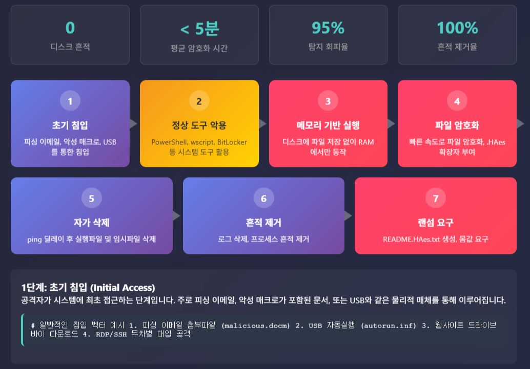 기록을 남기지 않는 랜섬웨어는 전통적인 보안 방어체계의 근본적 한계를 드러내는 새로운 위협입니다.