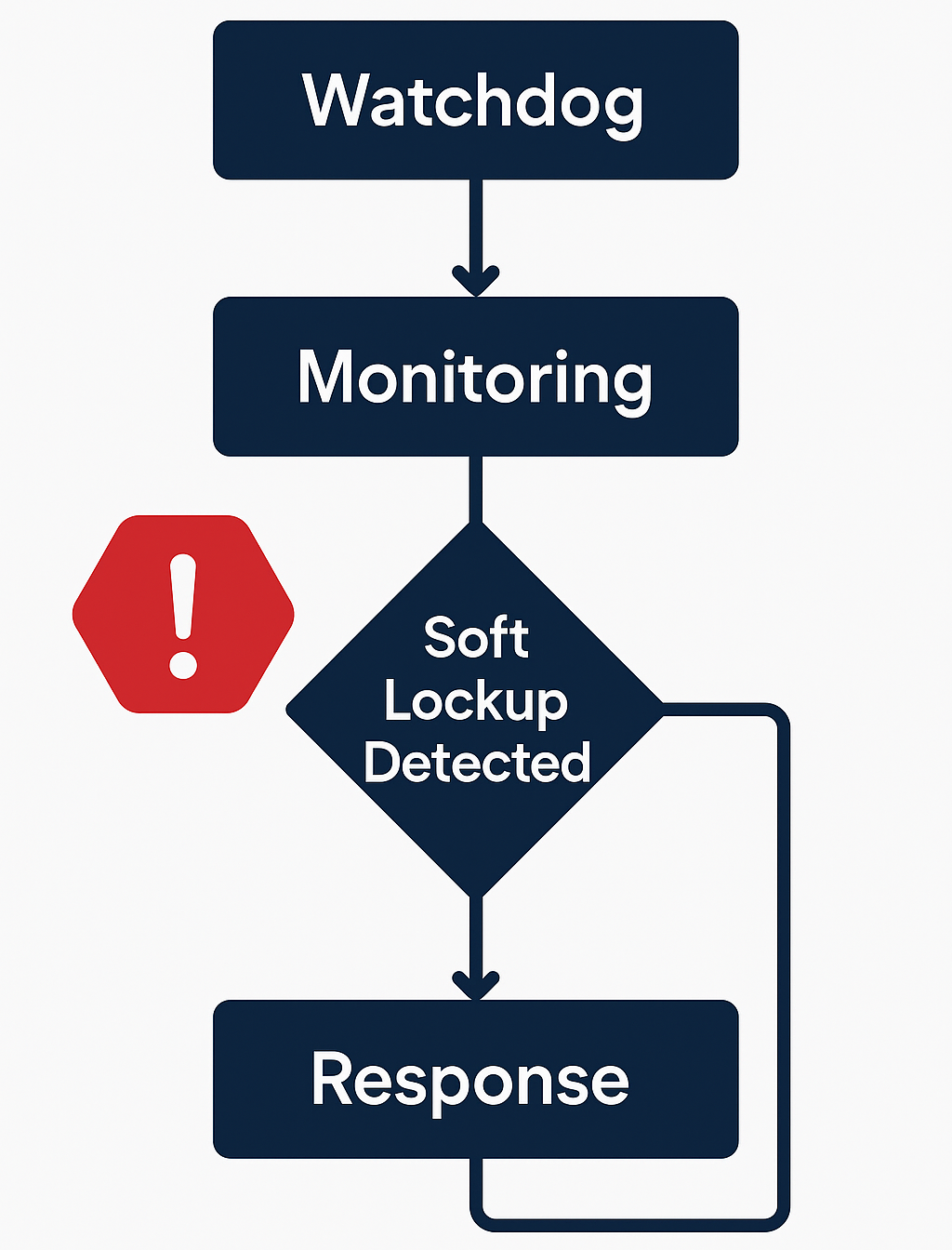 (예: 무한 루프, 긴 비마스킹 구간, 드라이버 버그, 과도한 busy-wait) - Hard lockup: NMI(Non-Maskable Interrupt) 수준에서도 CPU가 완전 멈춤 (하드웨어/커널 심각 문제)