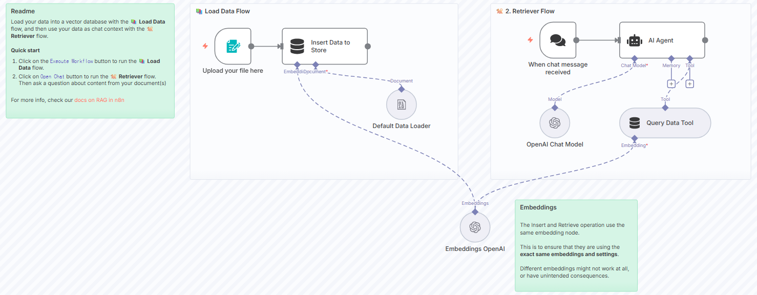 이 업데이트는 RAG(Retrieval-Augmented Generation) Starter Template가 추가되었습니다. 이 템플릿은 문서 업로드 → 벡터 스토어 삽입 → 쿼리/검색 → AI 응답 생성의 전형적인 RAG 파이프라인을 바로 실행할 수 있게 도와줍니다. 즉, AI 모델이 훈련 데이터에만 의존하지 않고, 외부 문서나 최신 도메인 지식을 검색·활용하여 더 정확하고 신뢰성 있는 응답을 만들 수 있습니다.